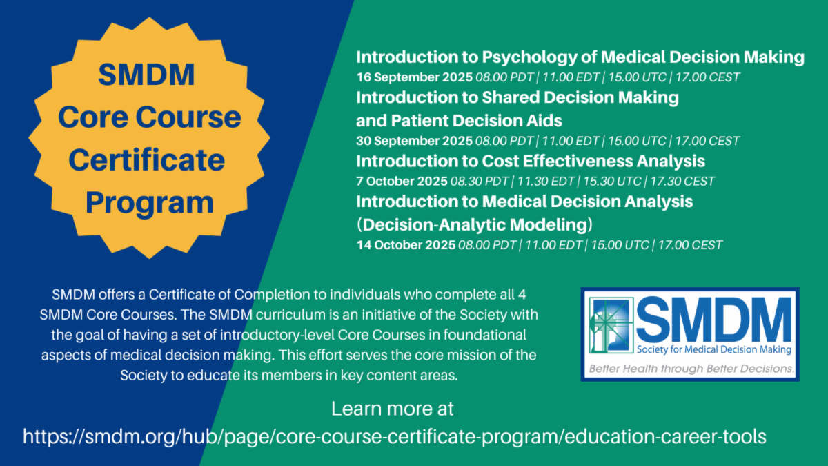 ![]() EDITOR’S NOTE ![]() By Helen Colby, PhD, Editor-In-ChiefI hope everyone had as great a time as I did at SMDM’s Annual Meeting in Michigan! A huge thank you to everyone who helped make it happen, especially Brian J. Zikmund-Fisher and David Hotton, the awesome co-chairs of the event. I thought the addition of the Clinician Crosstalk sessions was especially impactful and hope to see more of those at Annual Meetings in the future. Starting with the next issue, you’ll notice a new format for the newsletter. We’re aiming to make it more user-friendly, with improved navigation so you can more easily find the news you are interested in. Stay tuned! FROM THE PRESIDENT – MEETING DEBRIEF ![]() By Victoria Shaffer, PhD, President Dear SMDM community, It was wonderful to see so many of you at the annual meeting in Ann Arbor, Michigan. For me, there were many highlights of the conference, including a new short course on improv and science communication, the keynote address, and a social event to remember. As we transitioned to college campuses, one of the consistent pieces of feedback I have heard is that attendees love seeing other academic settings and learning about the unique features of each location. When our conferences are held in a hotel, I barely leave the building to take in much of the surrounding city. But holding our meetings on college campuses usually requires me to see multiple buildings on campus and more of the city’s sites as I move around town for various events. All of our parallel sessions and poster sessions this year were held in the Michigan Union, which was a beautiful space with dark wood, large windows, and ornate fireplaces in some of the rooms. It just exuded academia and science. Our plenary session was held in Rackham Auditorium, a beautiful Art Deco room that seats over 1,000 people and has a rich scientific history of its own. The University of Michigan recently celebrated the 70th anniversary of the announcement of the success of the polio vaccine. In 1955, researchers presented the findings from the polio vaccine trials, in Rackham Auditorium, which revealed that the vaccine was “safe, effective, and potent”. It brought me a lot of joy to listen to new scientific achievements and results from the latest research in such a beautiful setting with a rich academic story. I was also deeply moved during our afternoon in Rackham Auditorium. One of the (unplanned) themes that ran through my presidential address, the presentations from our award winners, and the keynote lecture was that, in addition to the celebration of our scientific work, we shared our “whys”, i.e., why we do this work. We talked about, named, and showed pictures of the people who inspired us and motivated us throughout our careers. Those personal insights in tandem with our rigorous science help to define what is special about our organization. We spend many volunteer hours engaged in mentorship and service because we enjoy and value the relationships we build throughout our careers alongside the scientific advancements. The Career Development Committee runs an amazing program during the Annual Meeting that includes a Speed Mentoring lunch event and a 1-1 Mentorship Program. Senior mentors in the society spend time with more junior members of SMDM, which creates a new generation of scholars who prioritize mentorship and service in their careers. I, myself, have been the recipient of generous mentorship at SMDM that has deeply impacted my scholarship and success. At my first SMDM meeting as a faculty member in 2009, I signed up for the 1-1 Mentorship Program and was paired with Brian Zikmund-Fisher (2025 Annual Meeting Co-Chair and Editor-in-Chief of Medical Decision Making and Medical Decision Making Policy & Practice). Our initial meeting for coffee turned into a two-hour brainstorming session, which led to many conference presentations, manuscripts, and grants over our 15 year collaboration to date. However, the only reason that I attended SMDM in the first place was at the encouragement of Angie Fagerlin (SMDM Past President), who I met in 2008 at the Annual Meeting of the Society for Judgment and Decision Making and the American Psychological Association’s Science & Leadership Conference. In addition to providing mentorship on all things related to science, including our own history of collaboration on grants and manuscripts, Angie also supported me in all other things related to life. One of the many things we talked about was trying to make room for both a happy family and a successful career. Essentially, Angie led a master class on how to adult in academia, and there were many others, in addition to me, that benefited from her experience and guidance over the years. We also cried about caring for dying parents while being parents and still having significant career responsibilities to manage. [I think we will need to call this class How to Adult in Academia 2.0. 0/10 do not recommend to others, but unfortunately it is a required course in life.] This, to me, is the heart of SMDM, and I was reminded about all of this at our Annual Meeting in Ann Arbor. I was inspired by and excited about the science presented at the conference, and I had a great time with colleagues and friends, new and old. SMDM is a great place to launch a career because you have so many people who invest in you, both personally and professionally. Likewise, SMDM is a great place to spend your time as a more senior member of the field because there are so many wonderful scholars to collaborate with and exciting new research endeavors to watch as the field advances. I will be looking forward to connecting with people throughout the year via Special Interest Groups, the October Business Meeting, and other webinars and short courses. And I am very excited to see you all in person again at the next SMDM meeting in Oslo!-Victoria ShafferTALKING ABOUT THE CLINICIAN CROSSTALK SESSIONS at SMDM2025 in ANN AR