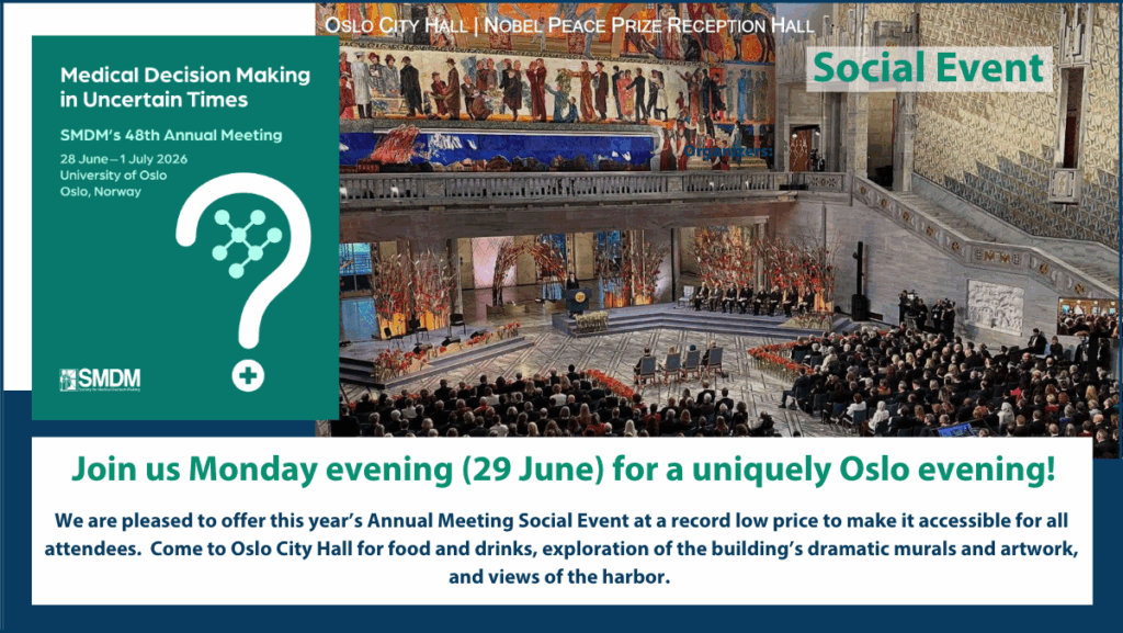 Following the social event, attendees are invited to continue the evening at Raadhuset Bar, located just a 3-minute walk from Oslo City Hall. This informal gathering is intended as a casual networking opportunity for SMDM attendees and their guests to continue the evening together.
