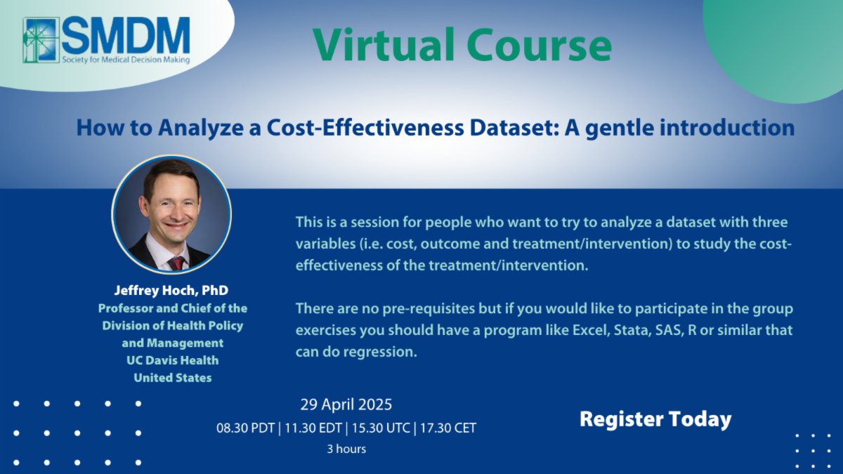 In the coming weeks and months, we will continue to move ahead with our activities in support of the mission of SMDM: To advance medical decision making research and practice to improve health outcomes. We are planning the 2025 Annual Meeting in Ann Arbor, Michigan and the 2026 Annual Meeting in Oslo, Norway. Our Annual Meetings will continue to feature programming critical to advancing our science, including scholarship on distributive cost effectiveness and improving health equity. In Ann Arbor, our keynote speaker will be Dr. Amaka Eneanya, a groundbreaking advocate for removing race from clinical algorithms such as kidney function and who will speak directly to the need to move away from race-based models for more accurate and equitable healthcare for all. We will also continue to fund meeting-based events designed to provide support and mentorship to SMDM members including our 1-1 mentoring program, the Advocates for Equity event, Trainee luncheons,
